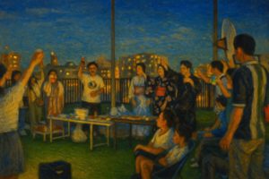 この日の花火は心なしか滲んで油絵のように見えました。